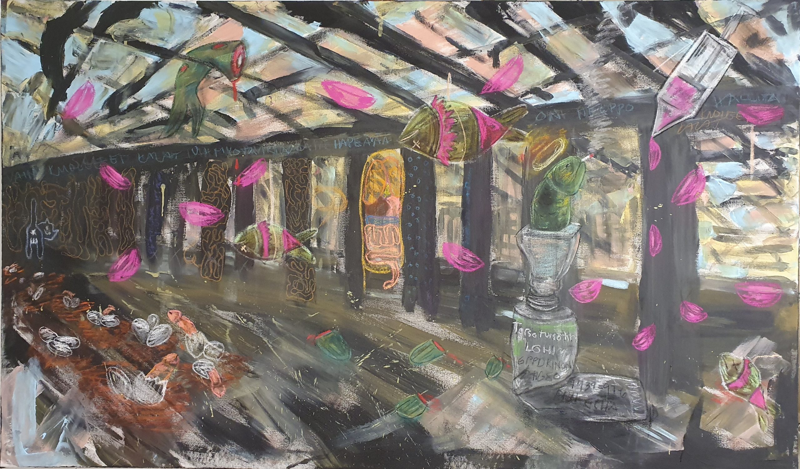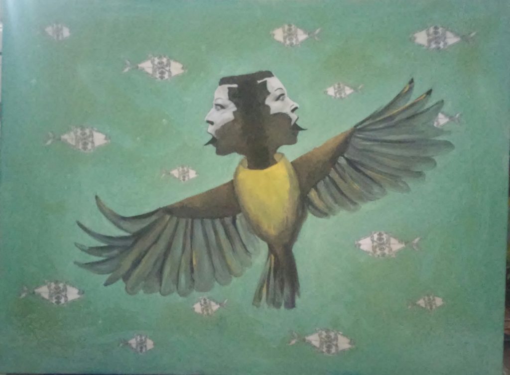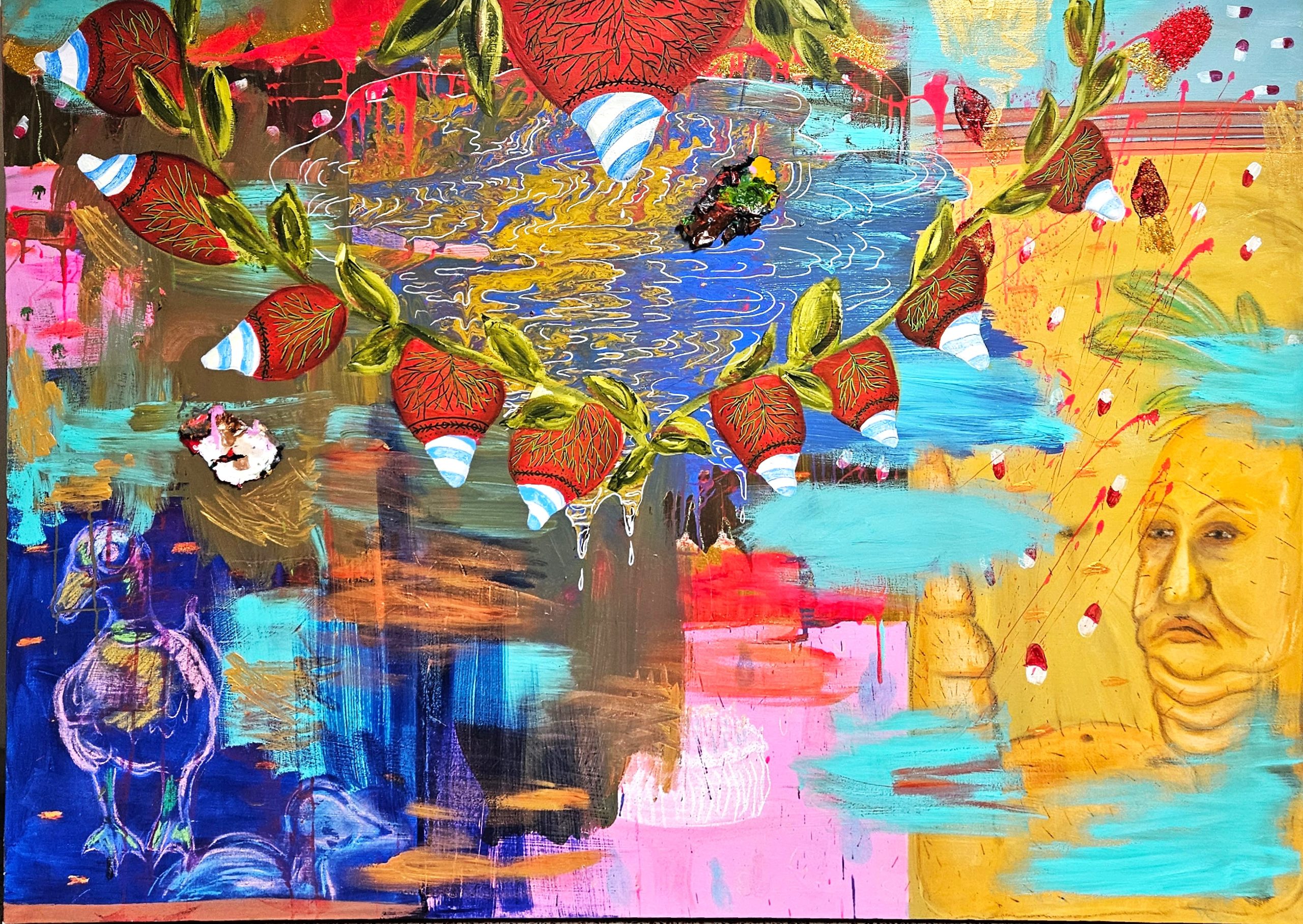 Through layered color, symbolic imagery, and intuitive mark-making, the paintings open spaces for reflection on coexistence, transformation, and the many ways of being in the world.
